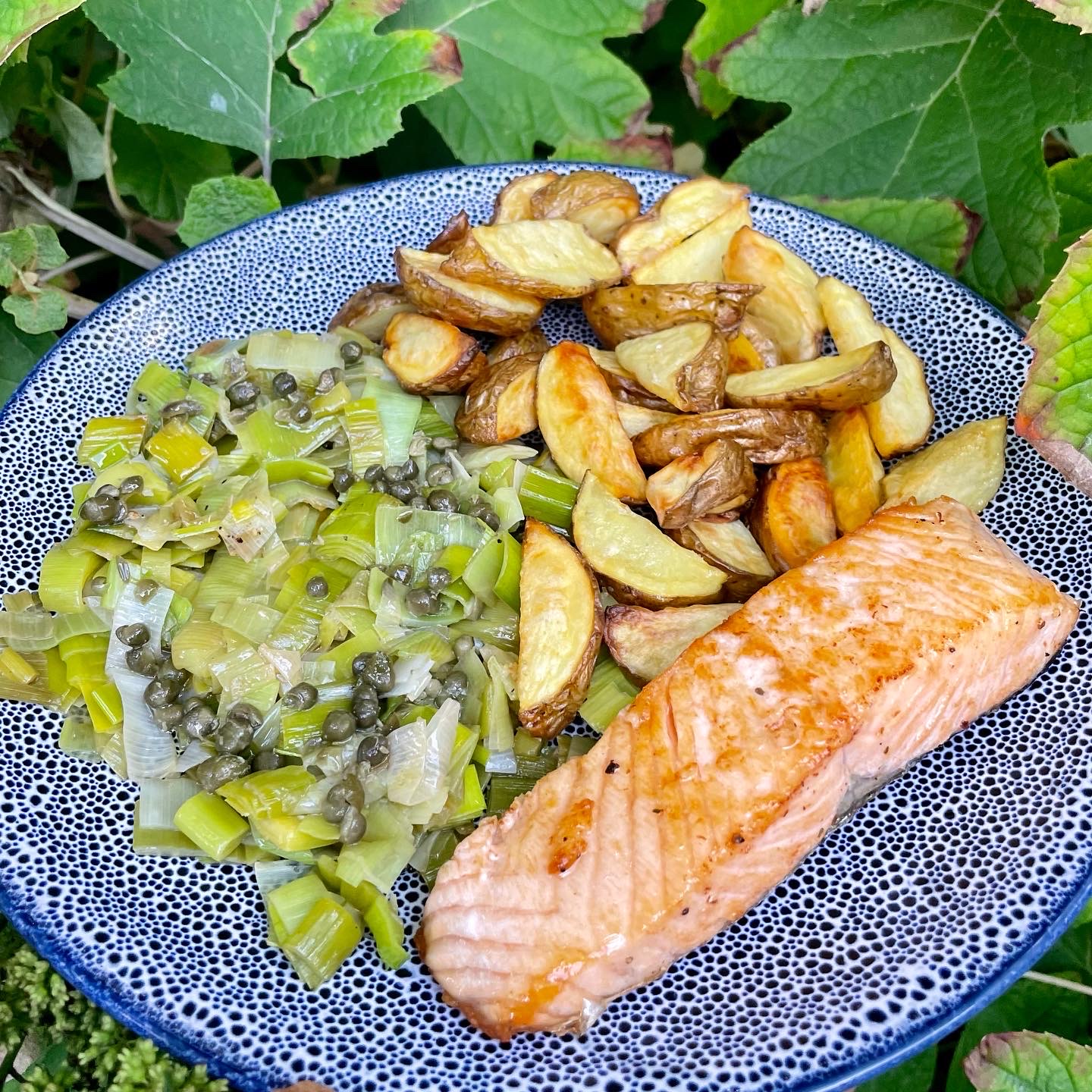 Deze prei die je eerst bakt in boter die je zo bruin laat worden dat die naar noten gaat ruiken en daarover een friszure vinaigrette van olie, azijn, mosterd en kappertjes vond ik zo leuk klinken dat ik dat weleens wilde proberen. Het was ook gewoon lekker en een leuke manier van bereiden. De rest is natuurlijk erg standaard erbij , maar voor een gewone maandagavond heb ik toch verrekt lekker gegeten en…… ik was weer van twee preien af ?