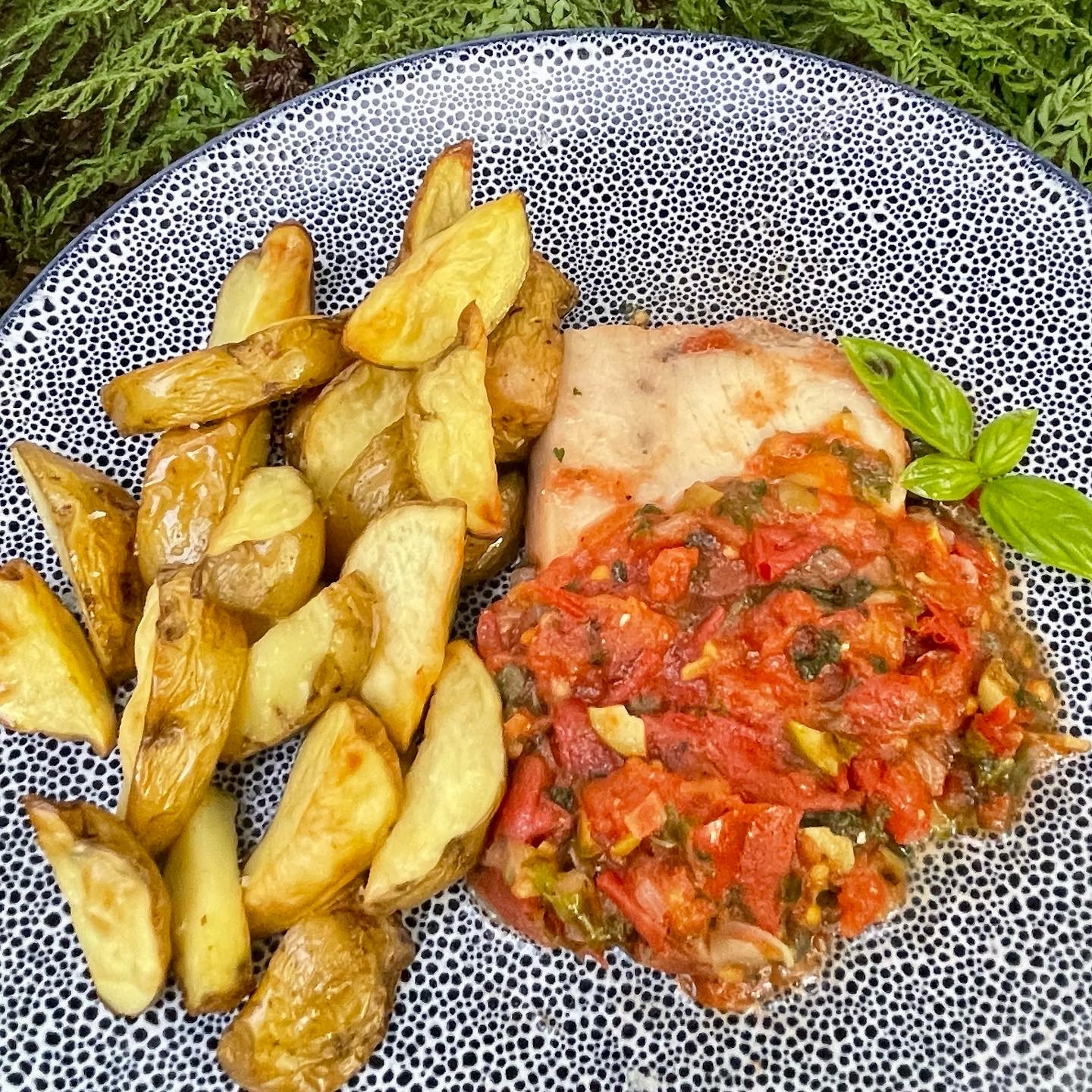 Met pomodori tomaten uit eigen tuin, gezouten kappertjes, mooie groene olijven, verse peterselie, basilicum en een scheut heerlijke witte wijn heb je alles waar je deze geweldige saus mee maakt.