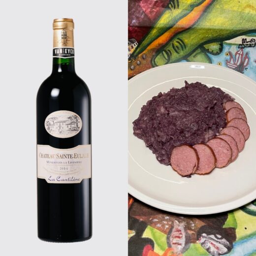 Deze wijn van Château Sainte Eulalie is dan ook gemaakt van syrah, carignan en grenache. Die gaat dus over de gewone stamppot met rookworst heen tenzij…. je er iets aards en kruiden, specerijen en een zoetje aan toevoegt.